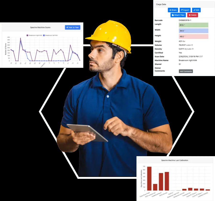 Spectre Hub ist eine Cloud-Speicher- und Analyselösung, die Kunden von Cargo Spectre einen Überblick auf Managementebene über alle Frachtgüter bietet, die von den Messgeräten ihres Unternehmens gescannt wurden. Benutzer können aggregierte Frachtdaten in jedem Lager von jedem Internetanschluss weltweit aus überwachen. Diese bahnbrechende Datenmanagementlösung macht alle Ihre Fracht-DIMs von überall und mit jedem Gerät zugänglich, organisiert und recherchierbar.