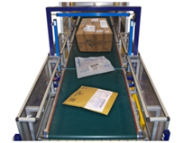 Fully automatic handling and sorting system for automatic identification, weight recording and sorting of parcels, mailing bags and small packages with discharge into unloading bays.